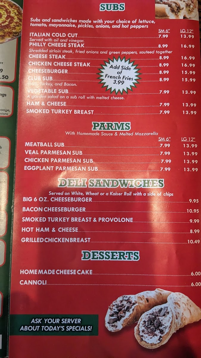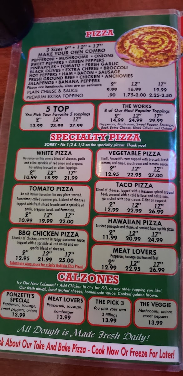 At Ponzetti's, the menu boasts a delightful variety of pizzas, including fan favorites like the hearty Meat Lovers and classic Cheese. Customers rave about the flavors, though some have noted occasional variations in sauce and preparation. Beyond pizzas, their calzones and signature Orange Crush drinks add a unique twist to the dining experience.
